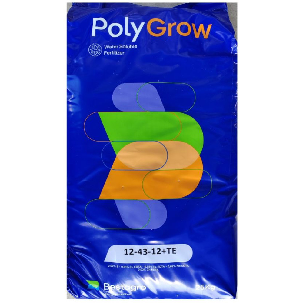POLY Grow 12.43.12 este un ingrasamant total solubil in apa de tip NPK pentru fertirigare cu un procent ridicat de fosfor indicat pentru utilizare in horticultura. Este foarte util pentru inradacinarea si dezvoltarea radacinilor plantelor, pentru inductie florara si inflorire, rezultand cresteri ale productiei si calitatii produselor agricole.